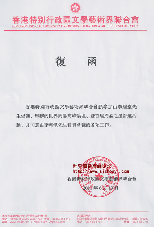 香港特别行政区文学艺术界联合会参加由李耀堂先生倡议,举办的世界周易高峰论坛