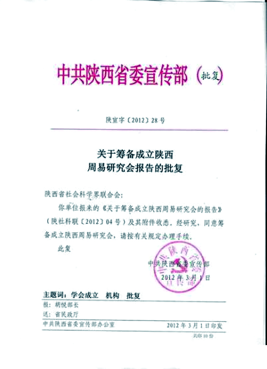 关于成立陕西省周易研究会“易愽源”传统文化纪实馆的批复