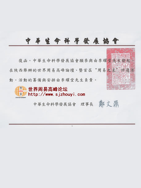 中华生命科学发展协会参与陝西举办的世界周易高峰论坛