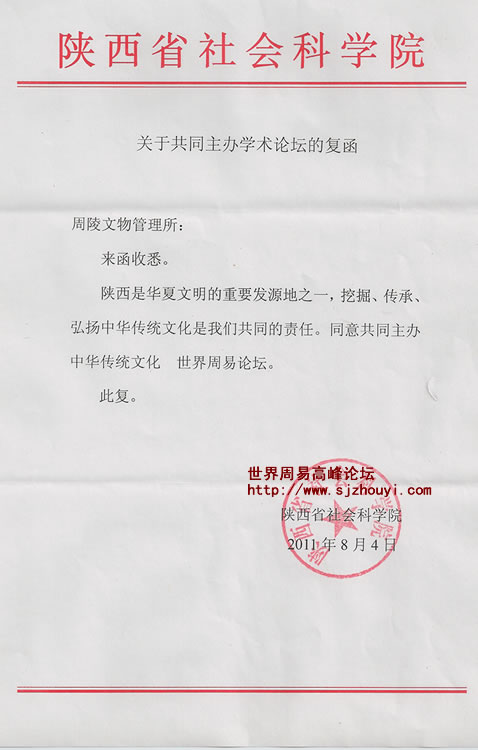 陕西省社会科学院关于共同主办学术论坛的复函